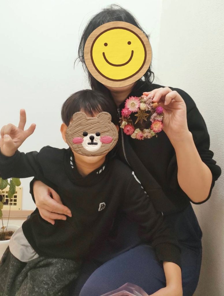 受け取ったお母さん達、最初はお花を見て驚いていましたが、お母さん達が笑顔になっていただけたらと、ひとつひとつCiliegioさんが全てハンドメイドで制作してくださったことを伝えると、皆さんリースを手に取り、とても大事そうに抱えて見つめていました。