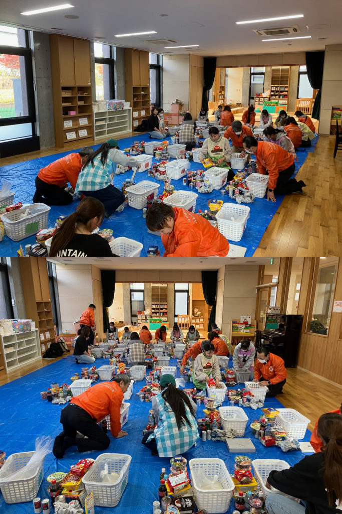 今年3月の長野ライオンズクラブさん×信州BWさん同様、今回もたくさんのお菓子、乾麺、レトルト食品、調味料等の食品です。梱包も長野ライオンズクラブの皆さんと県立大学の学生さんが、今回も楽しくにぎやかにおこないました!