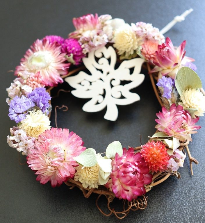 そして、今月は12月に向けて特別なリースのプレゼントもありました。福岡県福岡市のフラワーアーティスト「Ciliegio」さまから、生花を加工したドライフラワーの「クリスマスリース」のギフトです。(Ciliegioさんからは、毎年素敵なリースをお届けいただいています。3年前、一昨年、昨年)