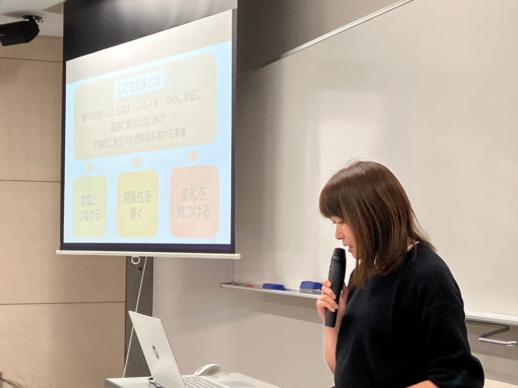 今までの授業で知識としては知っていましたが、事例を読むと重さが全然違いました。食材を届けることを通じて、家庭との繋がりを作るという目的をしっかり持って活動している団体を知ることができて良かったし、刺激になりました。ご家庭にとって、本当に支えになっていると思いました。