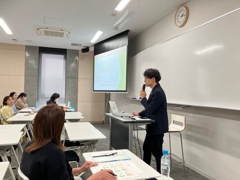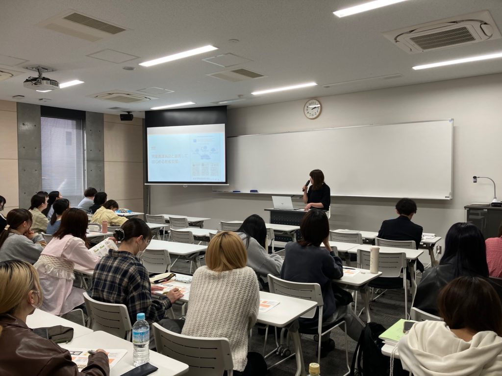 4月17日に、長野県立大学こども学科4年生の皆さんに向けて、『保育臨床特殊講義Ⅱ』の時間を頂戴し、100分間にわたり学生の皆さんと共に考え、学ぶ機会をいただきました。この講義は令和3年度より毎年継続して行っており、今年で5年目となります。