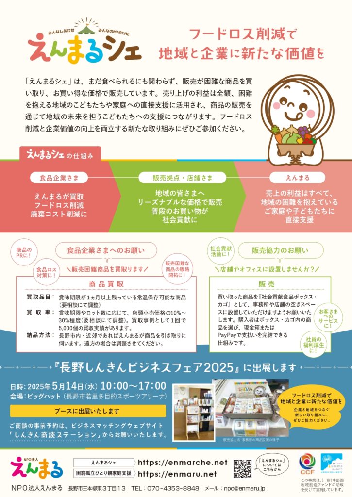 そんな思いをお持ちの皆さまと、新たなつながりが生まれるきっかけになればと思っています。えんまるシェは、社会課題の解決に向けて、企業の皆さまとともに取り組む仕組みです。