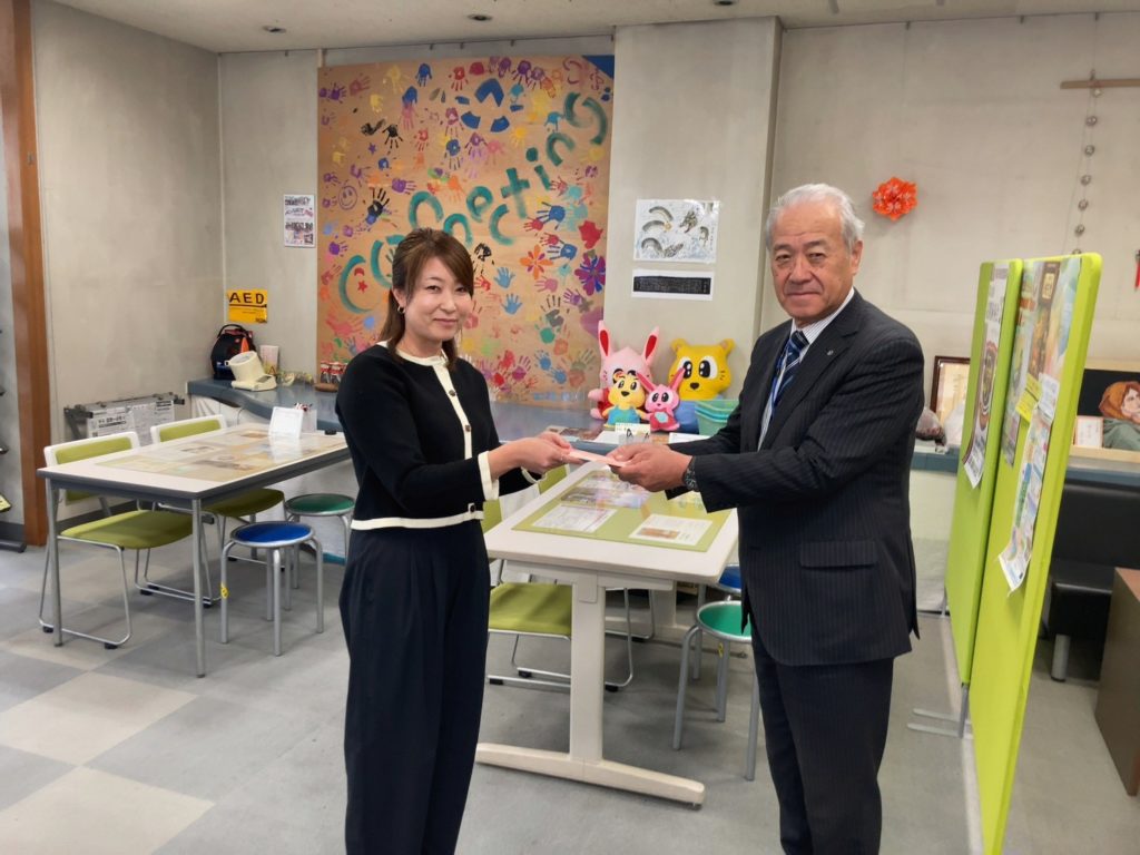 10月31日に、須坂市社会福祉協議会さまを訪問し、創成フェアの売上利益をお渡しするとともに、地域でつながる支援のあり方や今後の展望について、お話をさせていただきました。