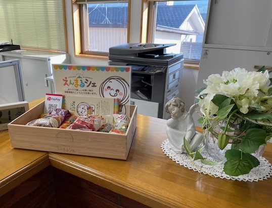 宝資源開発さんには、えんまるシェの商品を社員の皆さまや関係者の皆さまに向けてご購入いただいているほか、資金でのご支援、日々の取り組みでの連携など、さまざまな形で本当に心強い応援をいただいています。玄関窓口にもえんまるシェの商品を置いてくださり、訪れた方にご紹介もいただいていて、日ごろから力強く支えていただいています。
