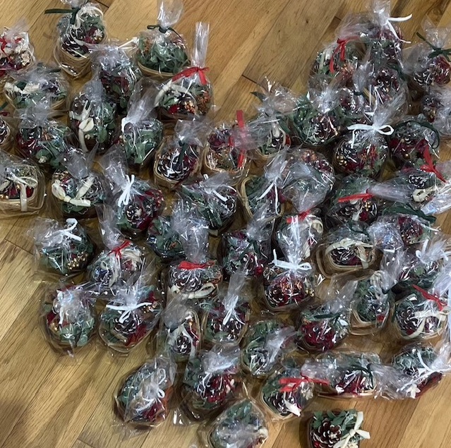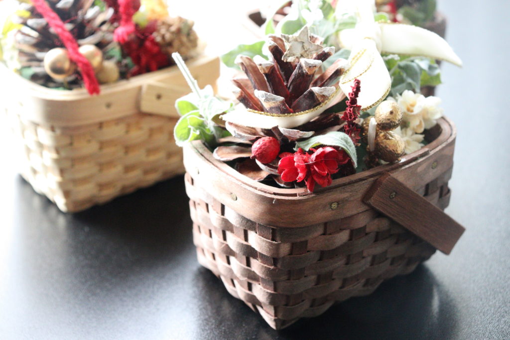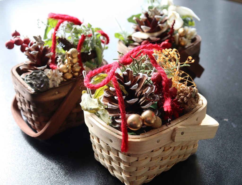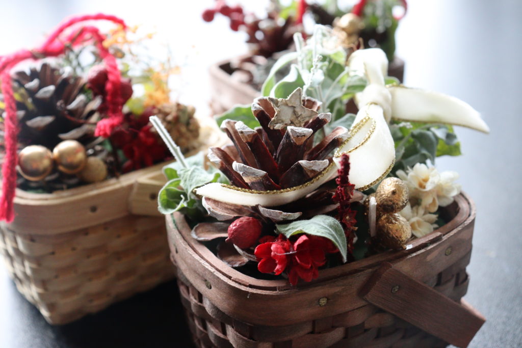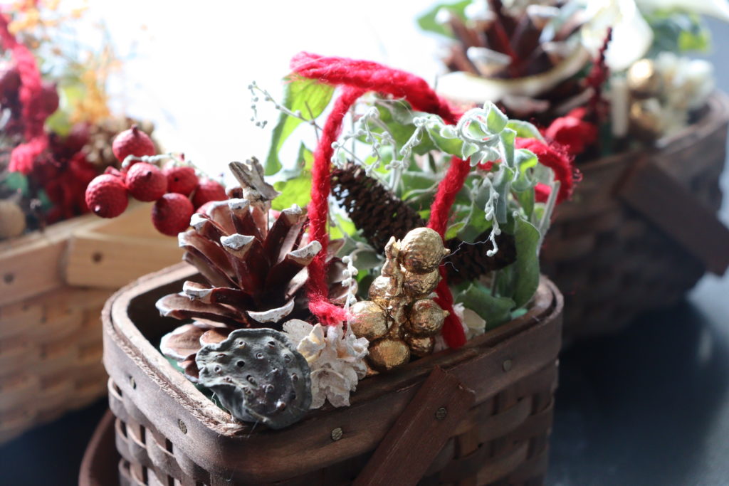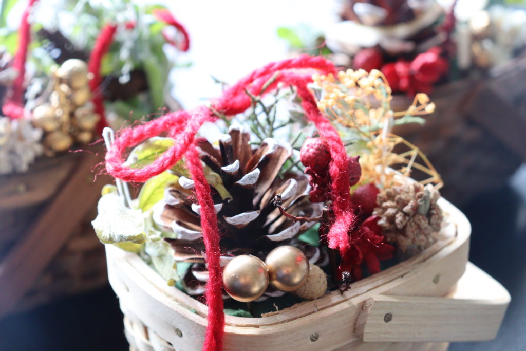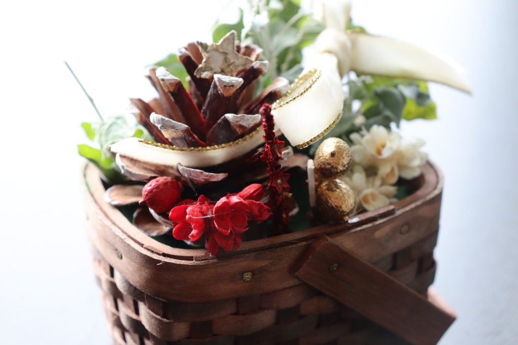 今月は12月のクリスマスに向けて特別なリースのプレゼントもありました。福岡県福岡市のフラワーアーティスト「Ciliegio」伊福さんから、生花を加工したドライフラワーの贈り物です。(Ciliegio伊福さんからは、毎年すてきなリースをお届けいただいています。)