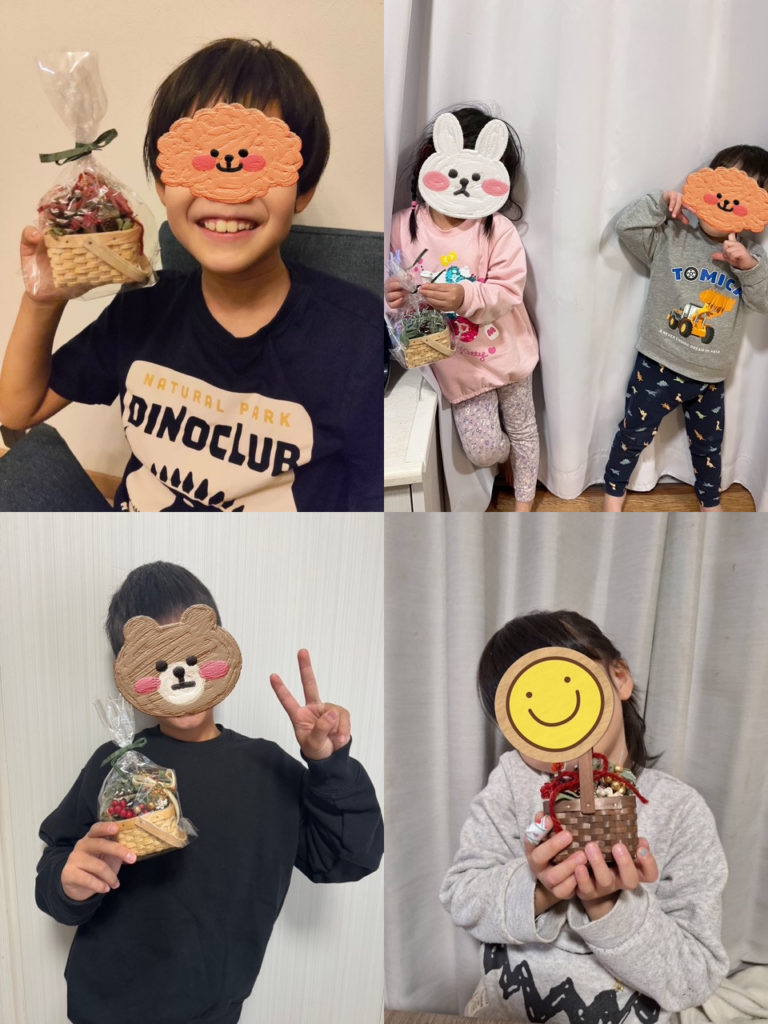 受け取ったお母さんたちは、最初とても驚いていましたが、「お母さん、こども達が笑顔になってほしい」と、ひとつひとつ伊福さんがハンドメイドで制作し、遠く福岡からお届けしてくださったことをお伝えすると、皆さんリースを手に取り嬉しそうに笑顔を見せながら、喜んでくださいました。