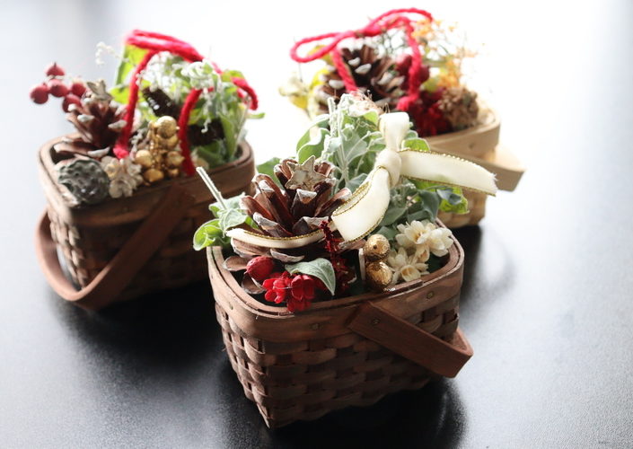 今月は12月のクリスマスに向けて特別なリースのプレゼントもありました。福岡県福岡市のフラワーアーティスト「Ciliegio」伊福さんから、生花を加工したドライフラワーの贈り物です。(Ciliegio伊福さんからは、毎年すてきなリースをお届けいただいています。)