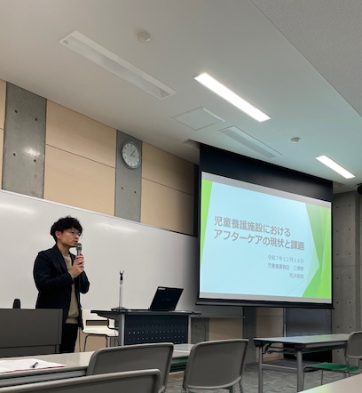 ・リービングケアやアフターケアについて、これまでは制度や支援内容を中心に学んでいましたが、実際のエピソードを聞くことで、より具体的に理解を深めることができました。心温まる婚姻届の承認にまつわる話がある一方で、自己破産に至ったケースなどもあり、当事者が直面する課題は非常に多様であることを改めて実感しました。こうした現実を知ることで、表面的な支援だけでなく、一人ひとりの状況に寄り添った継続的な支援の重要性を学ぶことができました。